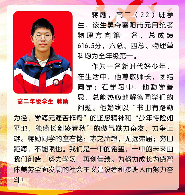2023年2月上榜先鋒學(xué)生——蔣勵(lì)