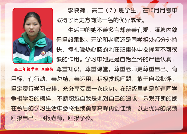2023年10月上榜先鋒學(xué)生——李映荷