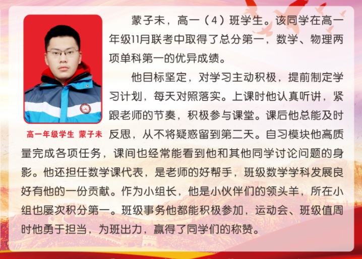 2023年11月上榜先鋒學(xué)生——蒙子未