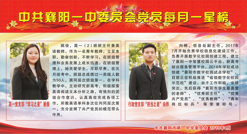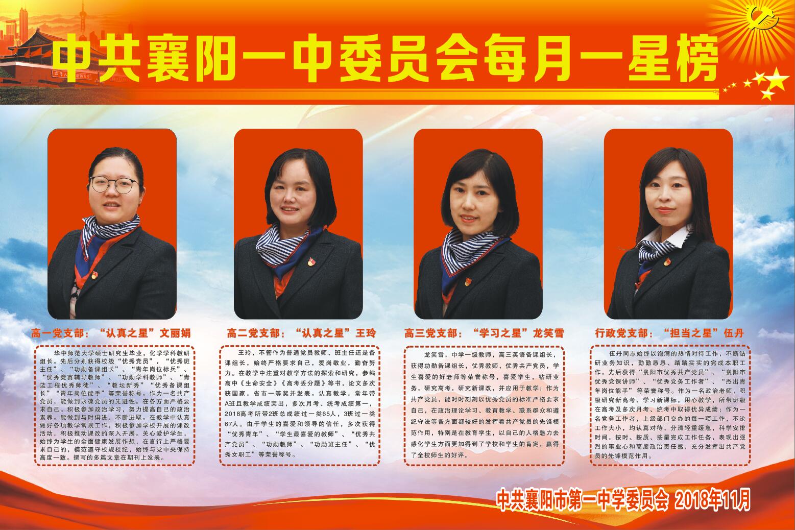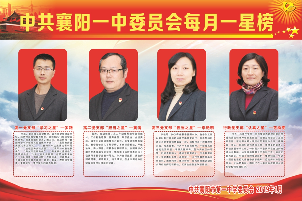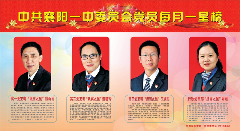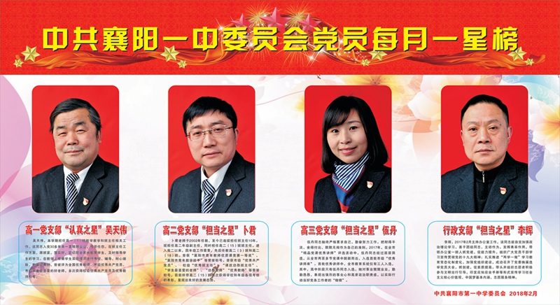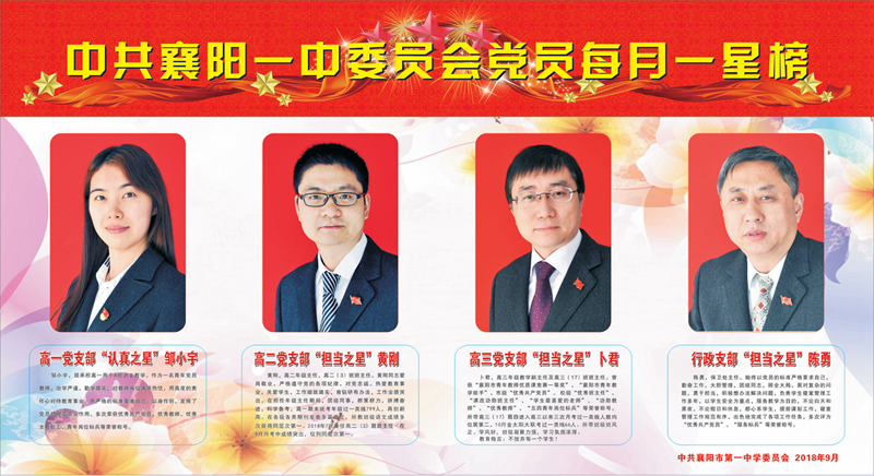 中共襄陽一中委員會黨員每月一星榜[2018年