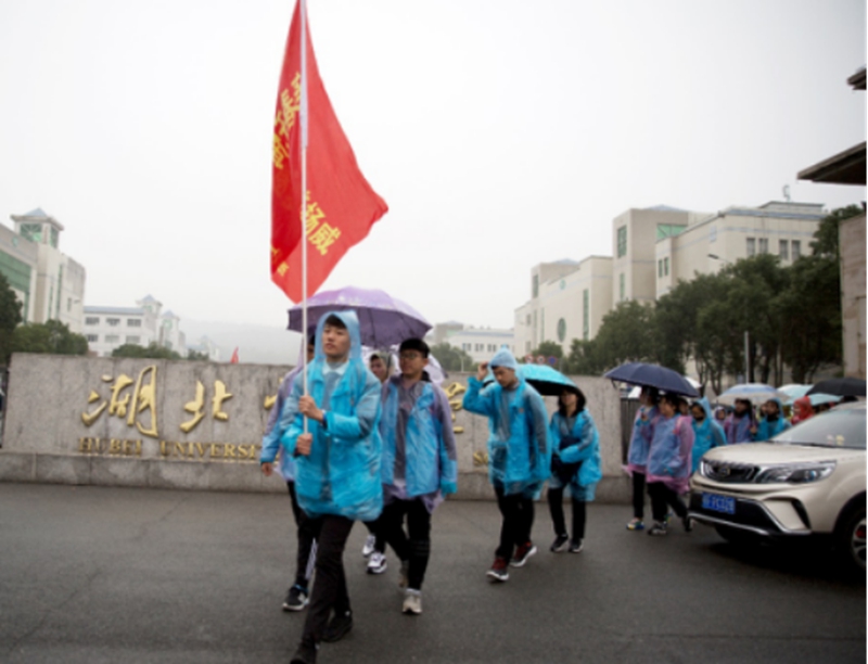 下午1點整,高二全體師生不懼風(fēng)雨,挑戰(zhàn)自我,共同向著一中進發(fā)。經(jīng)過三個半小時的跋涉,克服重重困難,穿過凱旋門,80華里勝利而歸。今天我們共同看漢江岸邊花開花落,攬萬峰頂云卷云舒;今天,我們共同挑戰(zhàn)無限運動,演繹精彩人生。