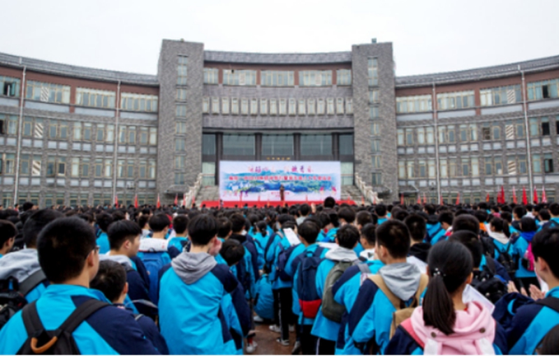 2017級全體同學(xué)齊頌《誡子書》,年級主任黃剛領(lǐng)頌