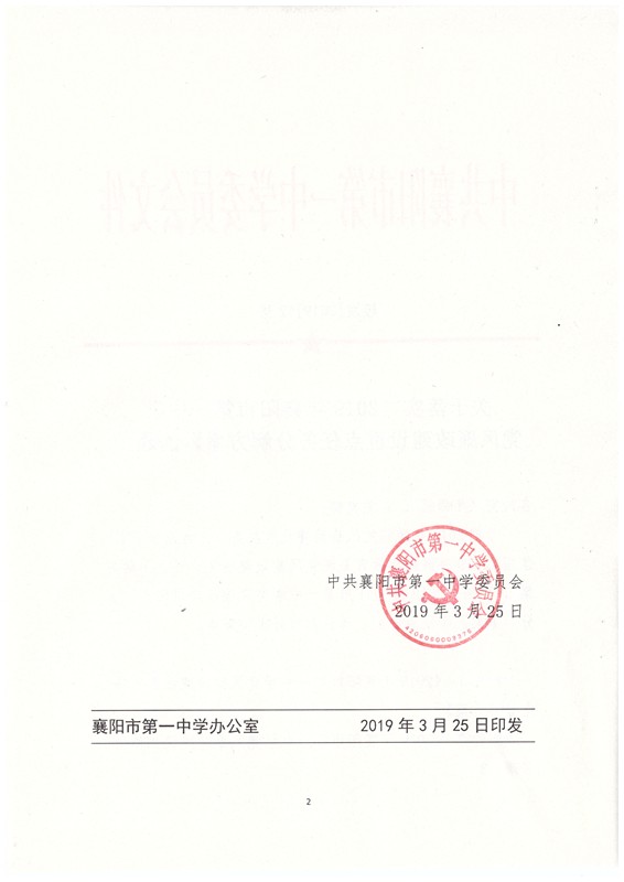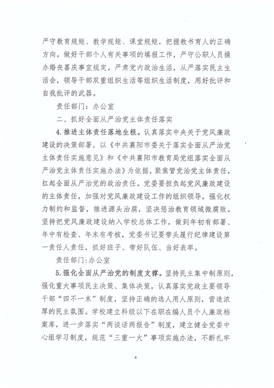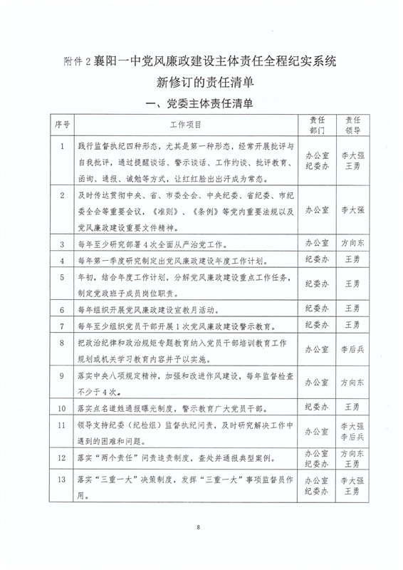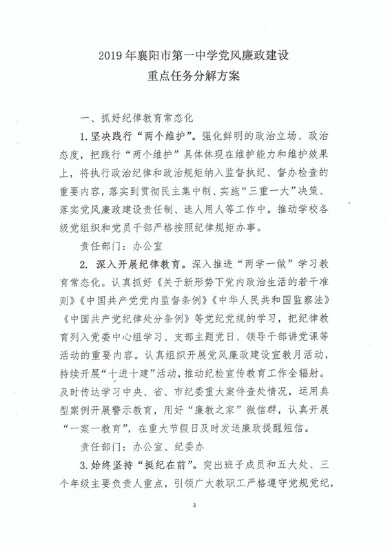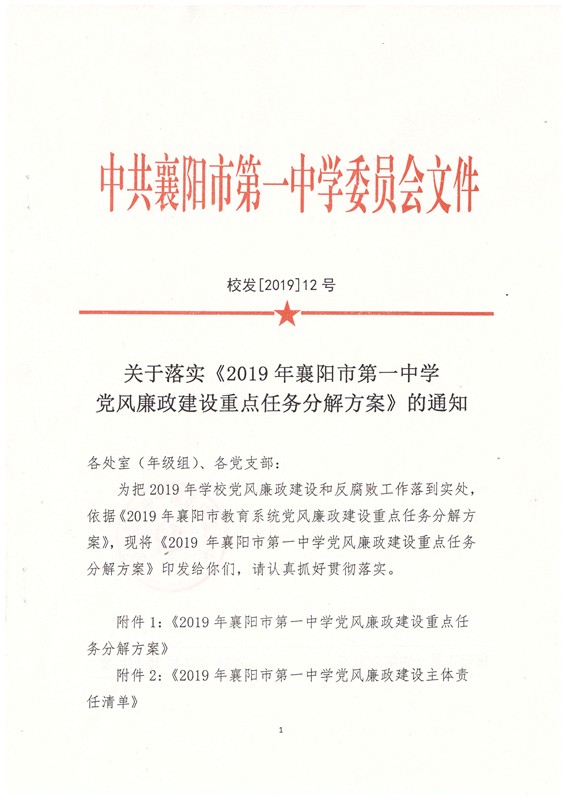 關(guān)于落實(shí)《2019年襄陽市第一中學(xué)黨風(fēng)廉政建設(shè)重點(diǎn)任務(wù)分解方案》的通知