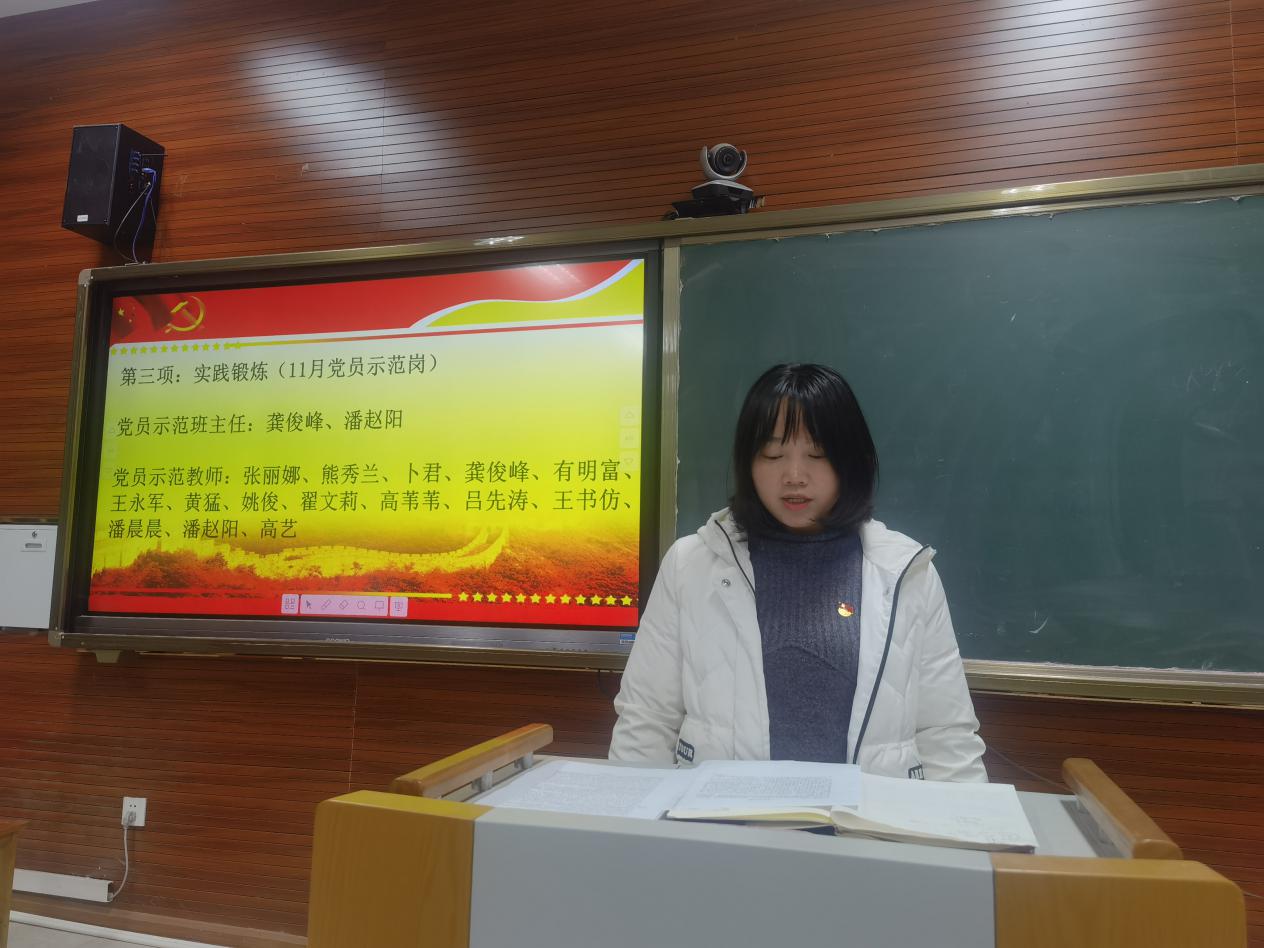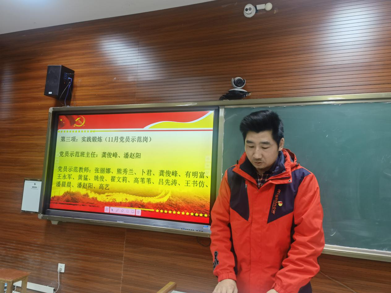 黨性鍛煉環(huán)節(jié)中,本月黨員示范崗優(yōu)秀教師熊秀蘭和高藝同志分別就自己的班級管理和學(xué)科教學(xué)分享經(jīng)驗和心得。熊秀蘭同志不僅明確班級學(xué)生的學(xué)習(xí)目標(biāo),同時將時間和任務(wù)一一細化,極大提高了管理和教學(xué)的效率;高藝同志則力爭成為“優(yōu)秀的高考備考教練”,一方面苦心鉆研和思考學(xué)科融合,另一方面引導(dǎo)學(xué)生應(yīng)對新高考建構(gòu)新的思維模型,理論性與專業(yè)性并舉,深受學(xué)生喜愛和歡迎。他們的發(fā)言讓在座黨員教師們獲益匪淺。